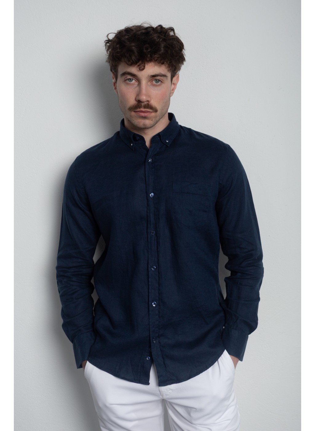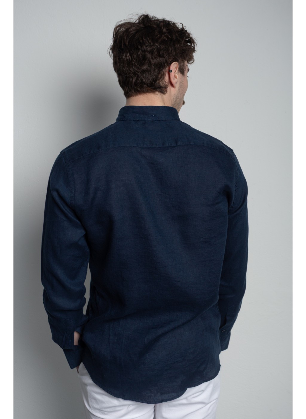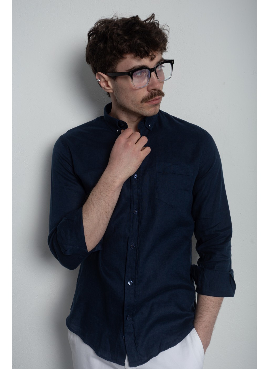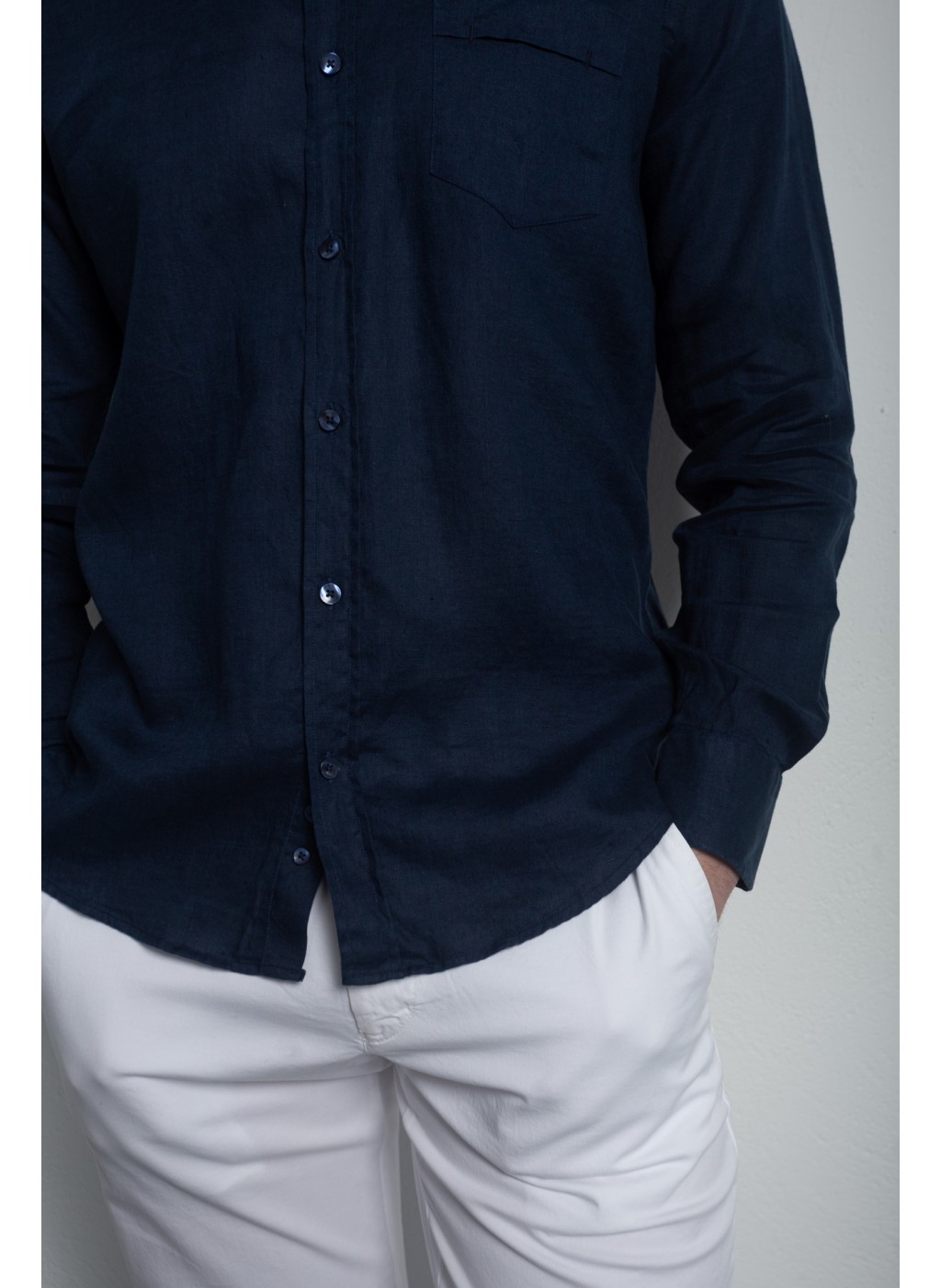 Сорочка чоловіча синя на основі льону